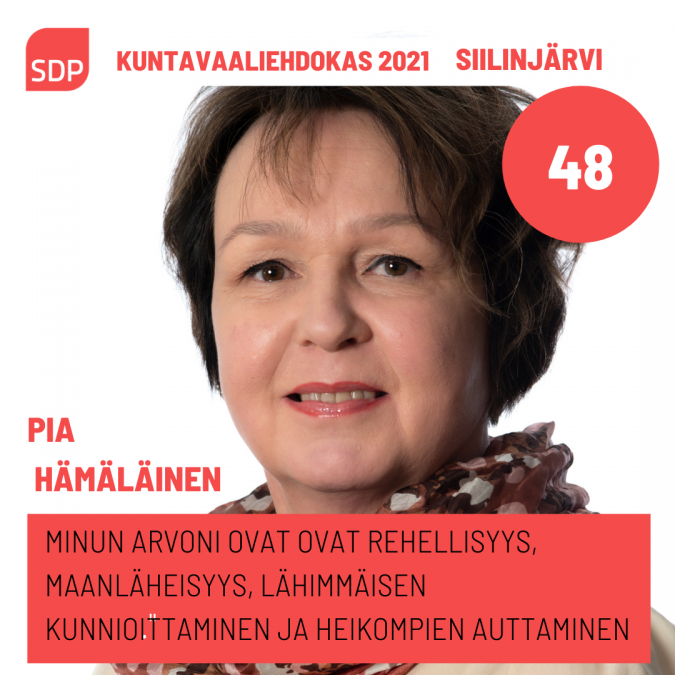 Pia Hämäläinen, kuntavaaliehdokas, päätoiminen tuntiopettaja, Harjamäki